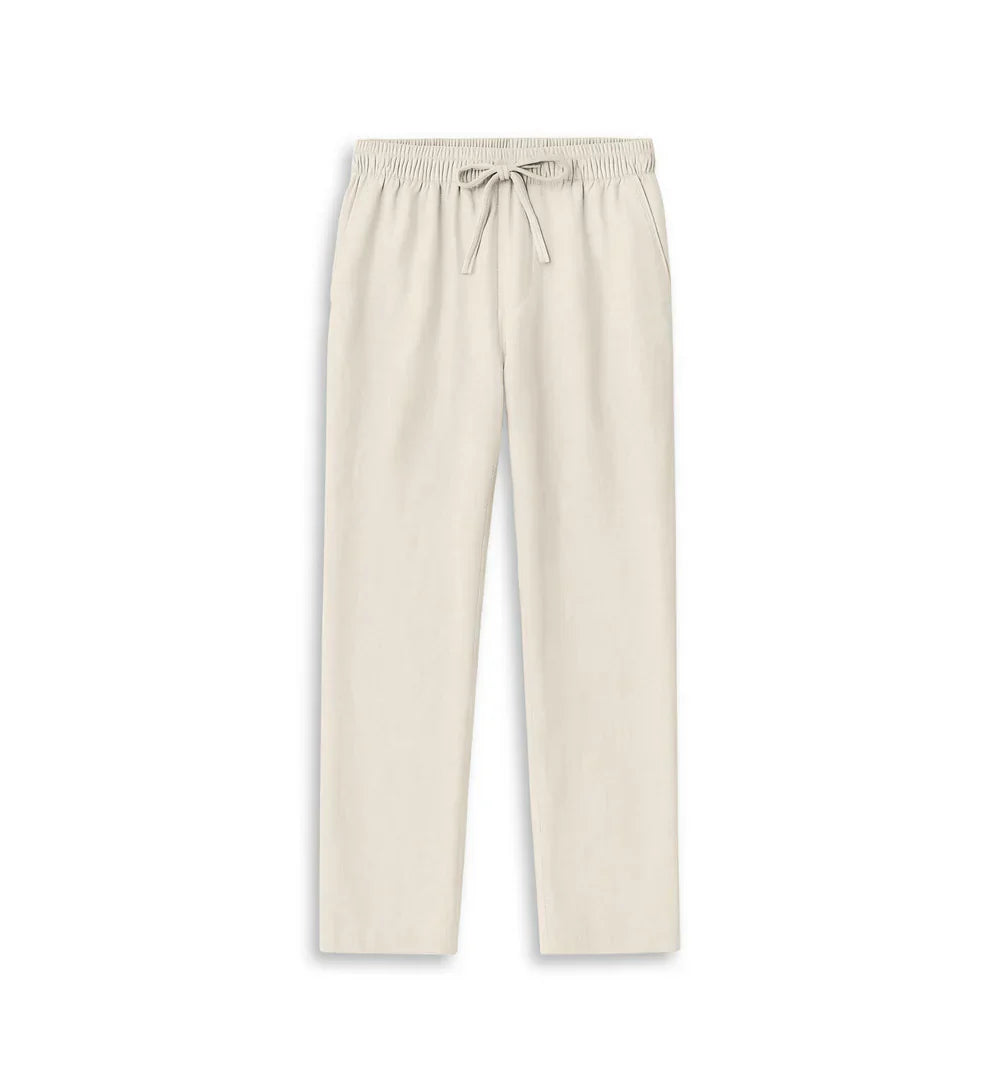"Lightweight co-linn trousers with a relaxed fit and drawstring waist—perfect for effortless summer style."